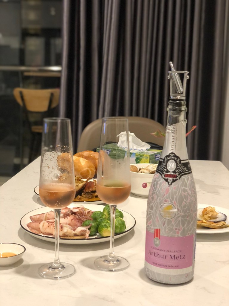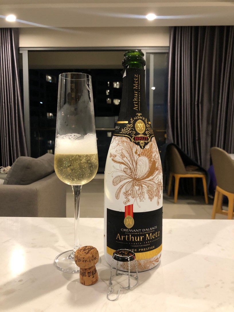 Ngoài ra, tôi có uống 1 chai Cremant Rose của Arthur Metz – bằng giá nhưng không lại không thích bằng chai này. Chai Rose có thể do làm Pinot Noir tôi cảm thấy nó hơi “nhàn nhạt” không có bản sắc không được dry như tôi nghỉ, tính axit thấp làm tôi cảm thấy không ấn tượng nhiều. Đánh giá 6/10 – hãy lựa 1 chai Rose khác trừ khi bạn được giảm giá 30% như tôi khi mua 🙂
