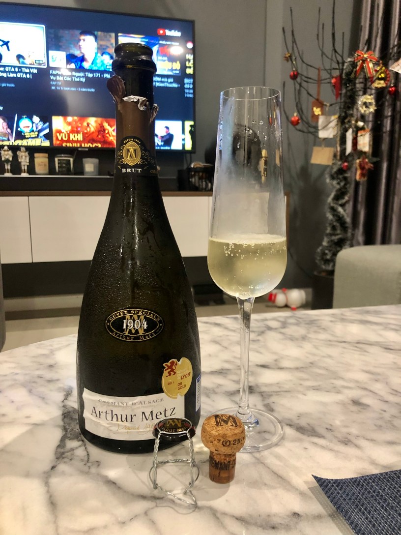 Nhà rượu sản xuất chai này và giống nho này mình có giới thiệu ở bài trước – nếu bạn muốn đọc thêm thì xem tại link này nhé https://giaoduyvinh.wordpress.com/2021/07/25/pinot-blanc-cremant-dalsace-brut-rose-prestige-n-v-tu-arthur-metz/