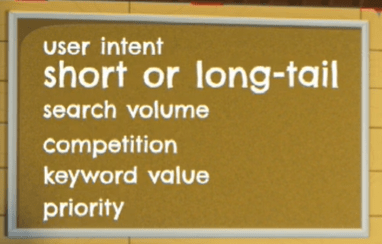 Chúng ta cần xác định intent của người dùng khi search để có kế hoạch hợp lý. Sẽ có 1 danh sách keywords mà bạn cần chuẩn bị, sau đó dựa vào các công cụ đánh giá (về độ phủ, độ phổ biến, độ cạnh tranh) để bạn quyết xem sẽ sử dụng keywords nào tốt nhất. Tuy nhiên cần đảm bảo list words đó bao gồm các yếu tố sau: