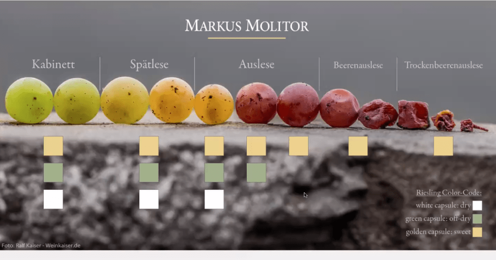 Nguyên nhân mà hội cho ra đời 1 hệ thống phân loại mới là do với khí hậy thay đổi ảnh hưởng đến điều kiện trồng trọt, ngày nay tất cả các mảnh ruộng trồng nho tốt đều có thể đạt được sự chín đầy đủ qua mỗi năm nên các khái nhiệm như kabinett, spatlese chỉ còn ám chỉ là nếu có 1 chút ngọt ở trong rượu còn nếu không nó sẽ được liệt kê là dry (trockern)