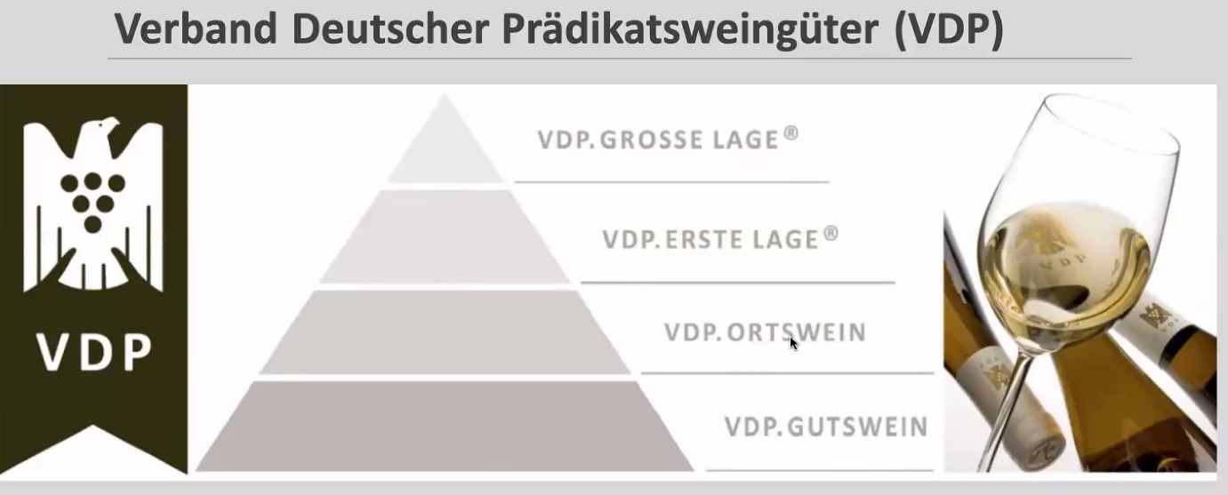 Hệ thống phân loại Riesling: Vào giai đoạn thể kỷ 21, các nhà sản xuất đã thảo luận 1 cách tốt hơn để phân loại Riesling. Họ cho ra từ viết tắt VDP tượng trưng cho “verband deutscher Pradikatsweingter” nghĩa là ủy ban đánh giá rượu vang đức và tạo ra 1 biểu tượng 1 con đại bàng và nho để đánh dấu các chai rượu thuộc hiệp hội.