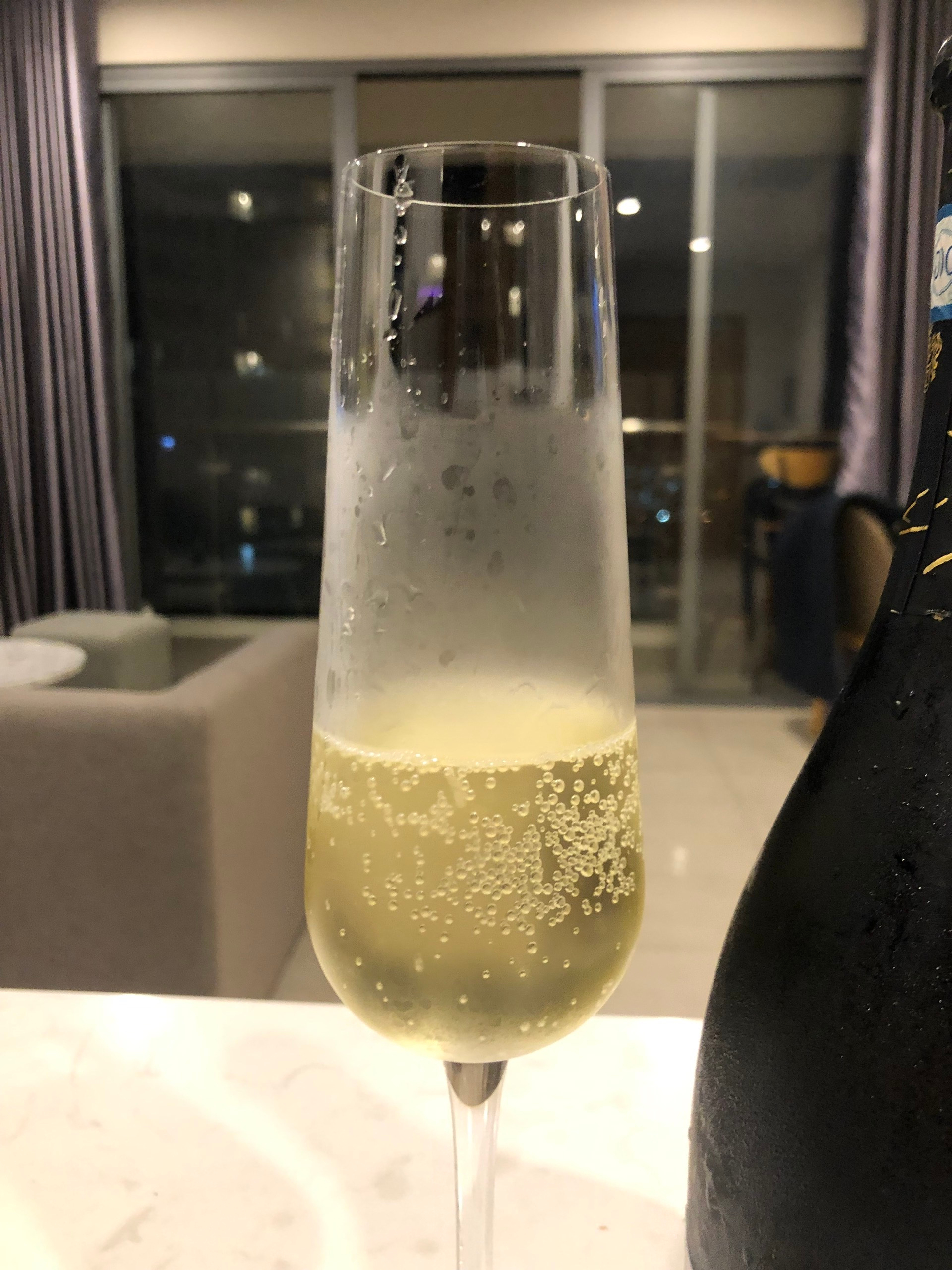 Cảm nhận về hương vị: Mùi thơm trái cây, thoang thoảng táo, đào – theo mình hương thơm không có tươi mát được như prosecco có lẽ do phương pháp khác nhau. Rượu có màu vàng nhe, sủi bọt to, nhưng tốt tuy nhiên độ chua hơi cao. Cá nhân mình cảm thấy chua gắt – cảm thấy hơi bị violate về acidity quá làm hậu vị không thoải mái không có smooth. Cấu trúc rượu cũng khá firm