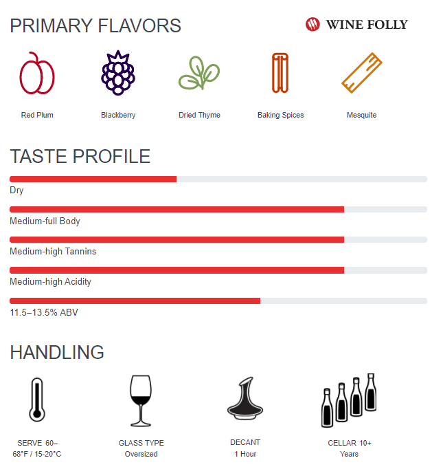 Cảm nhận về hương vị: Sau khi decant 45ph, hương vị nồng nàn của mận đỏ, trái cây chín, sâu và mạnh mẽ. Rượu có màu đỏ ruby đậm. Rượu có độ chat vừa phải, cân bằng với độ chua. Medium-bodiy. Phần hậu tương đối ổn, có độ sâu và kéo dài.