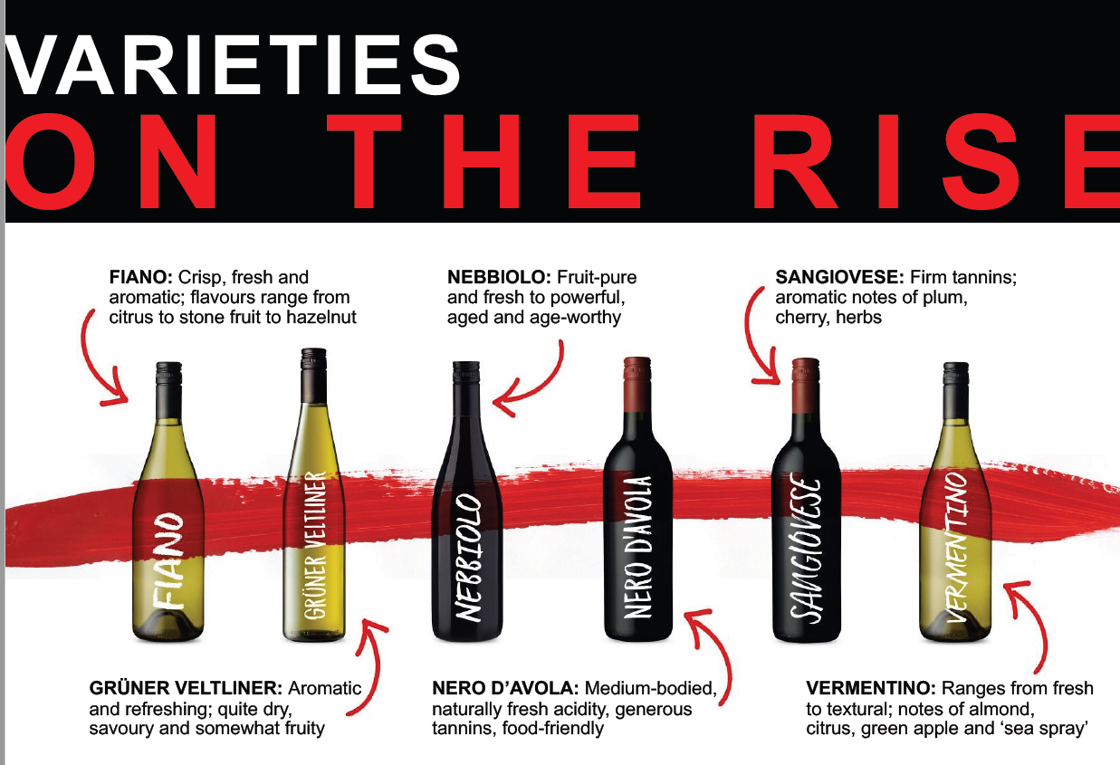 Các giống nho mới tại Úc: Xu hướng các giống nho đến từ miền Nam địa trung Hải – giống nho này rất thích hợp với khí hậu, phong cách sống, ẩm thực tại Úc. Người Úc khá cởi mở với các giống nho mới giúp cho ngành sx rượu vang Úc luôn mới mẻ và đổi mới