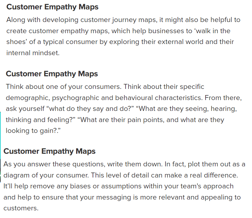 Mỗi khách hàng đều có cách tiếp cận với nhãn hàng của riêng mình, vì thế công ty cần phải xây dựng mỗi khách hàng 1 lộ trình tiếp cận khác nhau. Người ta thường hay gọi là customer journey maping – ở đó mọi điểm tiếp xúc (touch point) của từng KH sẽ được thể hiện rõ và các hoạt động bên trong. Một trong những lỗi khi xây dựng customer Journey là nhiều công ty/ nhãn hàng hay sử dụng những dự đoán từ nội bộ thay vì sử dụng các data hành vi người tiêu dùng, điều này cần tránh để đảm bảo tính chính xác