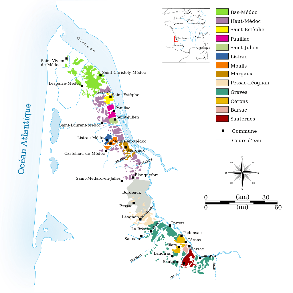 Rượu vang ở Margaux, có thể được gán nhãn Haut-Medoc (thường là rượu mà nhà trồng được xem ít nổi tiếng hơn thì muốn đưa ra thị trường với nhãn khác). Học cũng có thể đặt nhãn sử dụng Medoc AOC