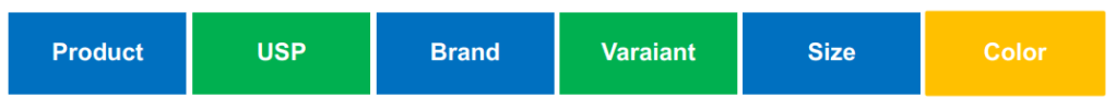 - Tên: tên ảnh hưởng rất nhiều đến NTD vì nó ảnh hưởng đến việc search. Một cái tên “sai” có thể làm cho bạn mất đi lợi thế trong việc hiển thị ở KQ tìm kiếm, tên “sai” là tên đặt ra mà không đúng theo thói quen tìm kiếm của NTD trong ngành kinh doanh sản phẩm đó. Ví dụ nếu bạn muốn tìm 1 chai sửa rửa mặt thì từ khóa đầu tiên bạn gõ là “sửa rửa mặt” chứ không phải là gõ như “dung dịch rửa mặt” hay “nước rưa mặt” vv…. Một cái tên “đúng” sẽ bao gồm: Loại sản phẩm + Đặc trưng (USP) + Thương Hiệu + Dòng hàng + Kích cỡ + Màu sắc/các phân loại đặc thù của ngành hàng kinh doanh