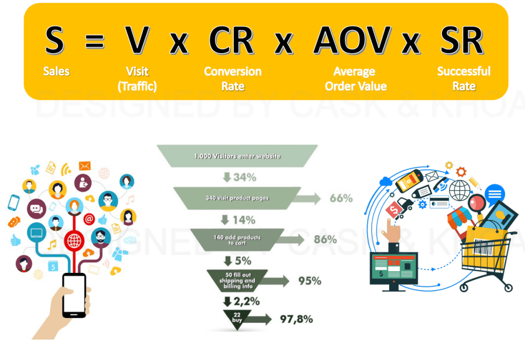 Trước hết doanh số từ sàn TMDT có thể hiểu đơn giản là: Sale (S) = Order (O) x Value (V)
